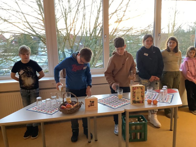 Nachhaltige Schülerfirma FruchtIGS der IGS Melle: Die Gruppe FruchtIGS wurde zusammen mit HonIGS unter dem Motto „Eine Biene, eine Blüte, ein Apfel, ein Leben“ gegründet. Die Schülerinnen und Schüler ernten auf der eigenen Streuobstwiese Äpfel und lassen sie bei einer Fruchtsaftkelterei in Bad Essen pressen. „Den Saft füllen wir in 0,2-Liter-Flaschen ab und verkaufen ihn in der Pause oder bei Schulfesten“, erklärt ein Schüler der AG. Weiter wollen die FruchtIGS über die Wichtigkeit von lokalen Produkten und den Erhalt der Artenvielfalt in Streuobstwiesen informieren.