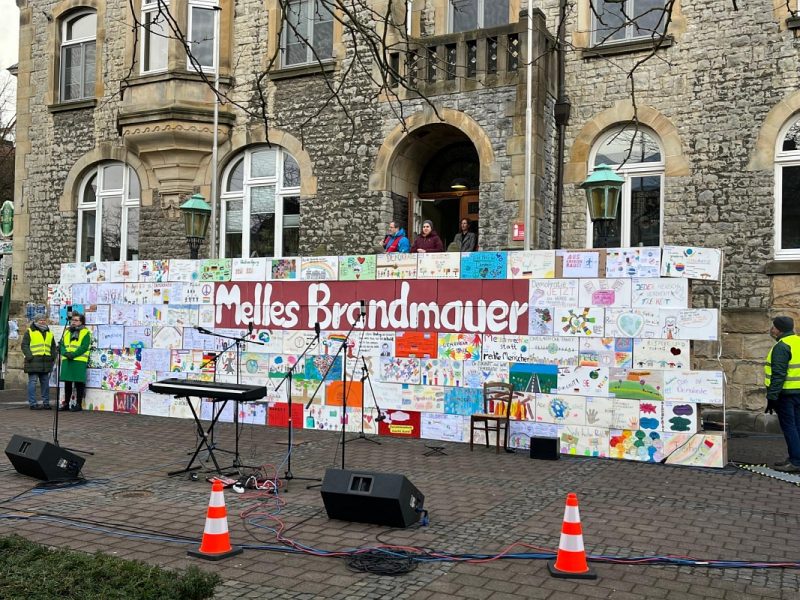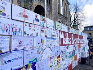 Am Sonntag, 16.02.2025, fand das Fest für Demokratie auf dem Rathausplatz in Melle statt und viele Meller Schulen haben sich an dem Projekt zum Thema „Was bedeutet Demokratie für uns“ mit einem gestalteten Karton beteiligt.