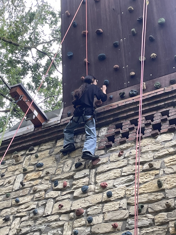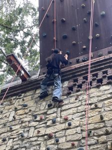 Des Weiteren standen Klettern an einer imposanten Bruchsteinwand bzw. im Hochseilgarten der Jugendherberge auf dem Programm. Dabei wuchsen viele durch die Anfeuerungen ihrer Mitschülerinnen und Mitschüler über sich hinaus und waren stolz auf die erbrachte Leistung.