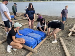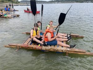 Für alle wurde es früher oder später auch nass: Beim Floßbau war handwerkliches Geschick gefragt, bevor sich die selbstgebauten Flöße im anschließenden Wettrennen auf dem Wasser beweisen mussten. Eine weitere Aktion auf dem Wasser war die Kanutour – ein Riesenspaß bei bestem Wetter.