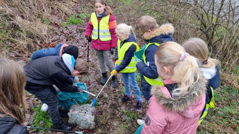 Am Freitag, den 24.02.2023 sammelten die Klassen jeweils eine Doppelstunde lang und suchten dabei unterschiedliche Gebiete rund um die Schule nach Müll ab. Besondere Funde waren unter anderem große Stapel nicht verteilter und noch zusammengeschnürter Zeitungen und ein 5-Euro-Schein, den der glückliche Finder behalten durfte.