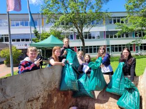 25 Gute-Taten-Scouts starteten am Dienstag, 11.6.2024, in der 5./6. Schulstunde ihre Sponsoren-Müllsammel-Aktion 4.0 zugunsten des Kinderhospiz Löwenherz in Syke. Start und Ende waren diesmal an der IGS, wo sich die Scouts mit Müllbeuteln, Handschuhen, Warnwesten und Zangen bewaffneten und sich von mehreren Regenschauern unterwegs auf ihren Sammelrouten nicht beeindrucken ließen.