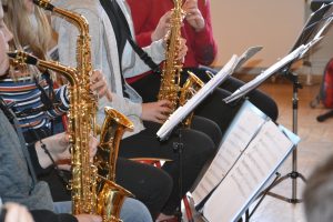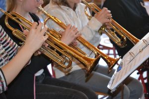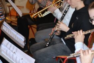 Im Jahrgang 6 wenden wir uns dem Symphonieorchester mit seinen verschiedenen Instrumenten und ihren Klängen zu. Dabei trainieren die Schülerinnen und Schüler nicht nur die Fähigkeit, die Orchesterinstrumente – oder zumindest ihre Instrumentengruppen – hörend zu unterscheiden, sondern lernen auch viel über verschiedene Möglichkeiten der Klangerzeugung. Auch eigene Spielversuche auf verschiedenen Instrumenten stehen auf dem Programm, z.B. auf einer unserer Geigen, Celli, Trompeten oder Querflöten. Aber wir wollen Musik nicht nur durch Instrumentalspiel hörbar machen, sondern auch sichtbar machen. Deshalb beschäftigen wir uns auch mit der Notation von Musik und dem Noten lesen, um dann gemeinsam tolle Klassen-Arrangements auf verschiedenen Instrumenten spielen zu können. Im 2. Halbjahr werden die Schülerinnen und Schüler selbst zu „Komponisten“ und erfinden in kleinen Gruppen ein Musikstück in Form eines Rondos. Außerdem beschäftigen wir uns mit verschiedenen Komponisten und erstellen ein Komponistenportrait.