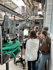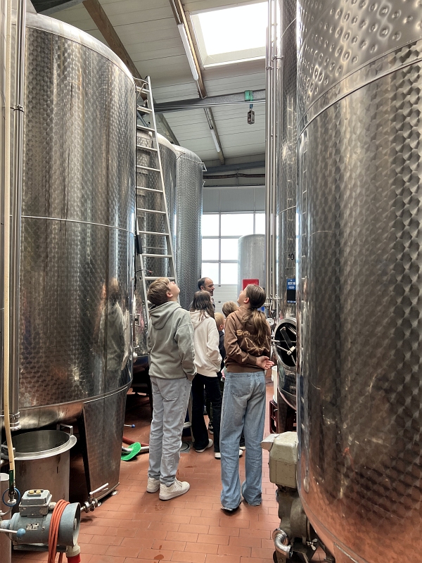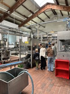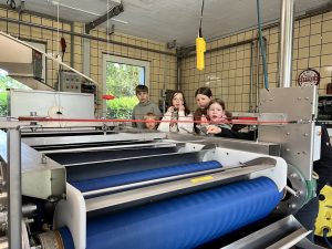 Die Schülerinnen und Schüler bekamen eine spannende Betriebsbesichtigung, geführt von den Inhabern der Firma. Die Stationen der Fruchsaftkelterei, vom Abladen der Äpfel über das Pressen und Lagern des Saftes bis hin zur Abfüllung wurden gezeigt und die Schülerinnen und Schüler konnten viele Fragen stellen.