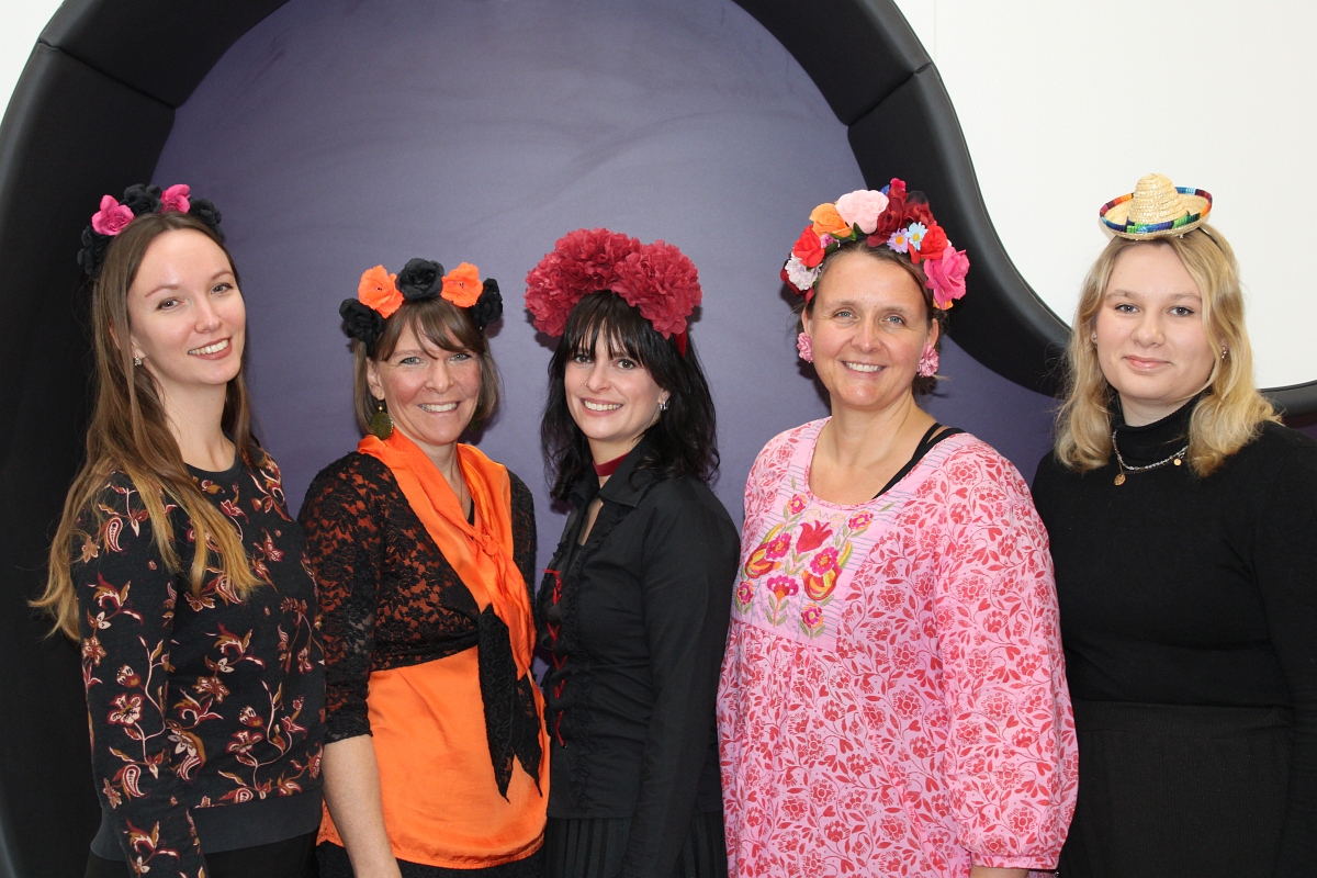 Bei allen Aktivitäten gab es Gelegenheit, die kulturellen Hintergründe kennenzulernen. So wurde einigen bewusst, dass hinter fremden Begriffen wie Ofrenda, Alebrijes und Calaveritas viel mehr steckt als eine einfache Übersetzung: Jedes Detail hat symbolische Bedeutung, um die Vorfahren zu ehren, sich an die schönen Seiten ihres Lebens zu erinnern und sogar gemeinsam mit den Verstorbenen zu feiern. Denn, so glauben die Mexikaner: Am Tag der Toten kehren die Ahnen auf die Erde zurück – und diese Zeit soll genutzt werden, um miteinander viel Spaß zu haben, sie zu ehren und sogar humorvoll mit dem Tod, „la Catrina“, umzugehen.