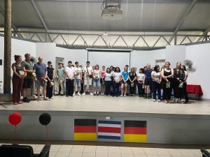 Nun sind wir zweieinhalb Wochen im Mai/Juni 2024 in Costa Rica gewesen. Wir wurden sehr freundlich von unseren Gastgebern an der Schule und in den Familien empfangen. Haben Einblicke in das Leben vor Ort gewonnen und haben gemeinsames Programm zum Schutz der Biodiversität und Kultur durchgeführt. Hierbei haben wir verschiedene Schutzprojekte in Wäldern und an der Küste besucht, sind von Indigenen in ihrer Kultur unterrichtet worden und konnten uns mit unseren Partnern zu Themen wie Wasserknappheit, Wiederaufforstung, Müllvermeidung und dem Engagement für Naturschutz austauschen. Wir haben unsere vier Partnerschulen in Heredia, Coto, Nicoya und Sarapiqui besucht und somit sehr viel vom Land gesehen. Anstrengend waren lange Busfahrten, frühes Aufstehen, das tropische Klima, lange Tage und viele neue Menschen kennenzulernen, aber genau das war auch schön und besonders und hat uns einen sehr intensiven Einblick in das Land und das Leben in Costa Rica gegeben. Wir sind unseren Partnern und Freunden sehr dankbar für diese besondere und wertvolle Zeit.