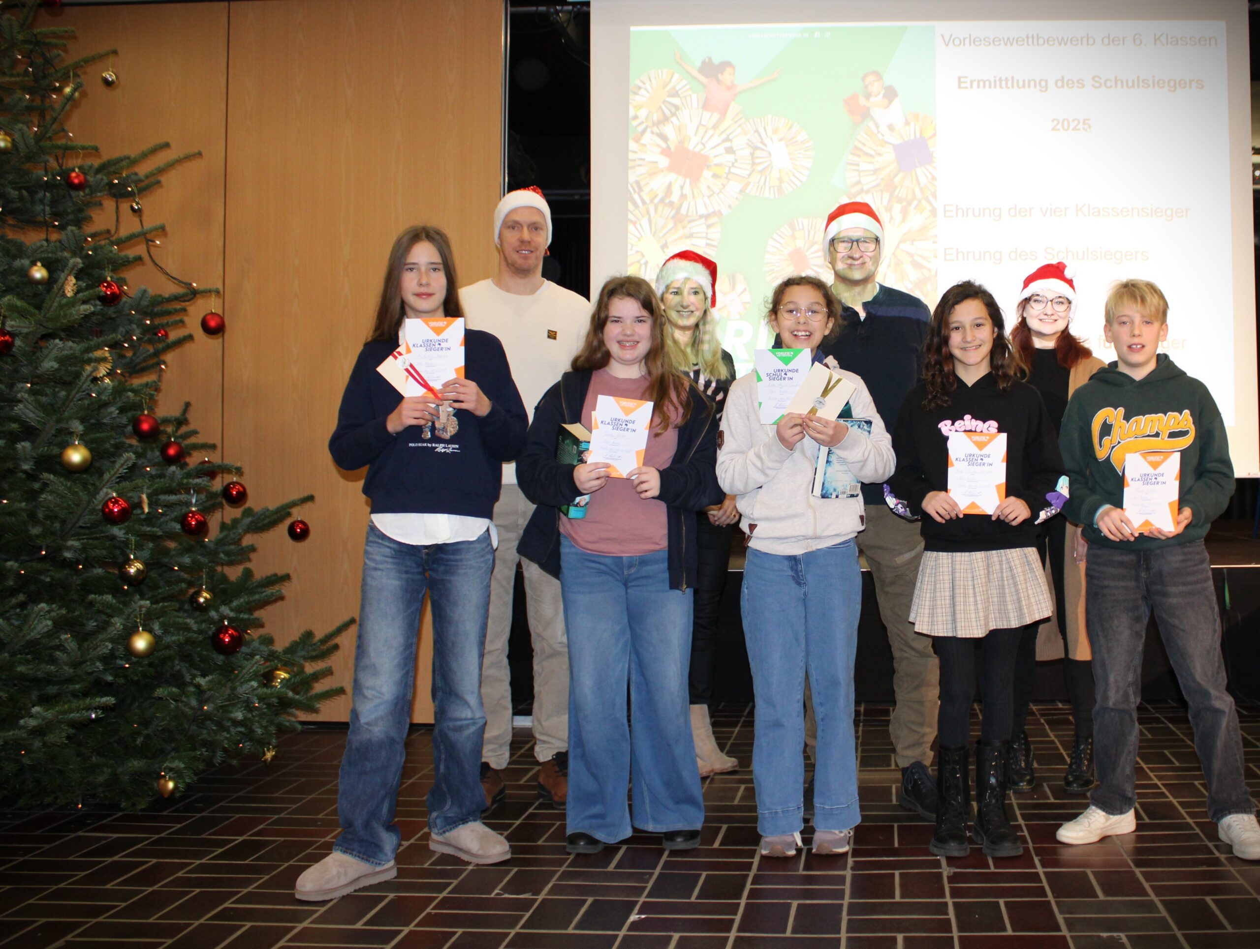 Am 06.12.2024 fand der Vorlesewettbewerb an der IGS Melle unter der Leitung von Nicole Steinmeyer statt. Die Klassensieger aus den jeweiligen sechsten Klassen haben vor der Jury ihr Können bewiesen: