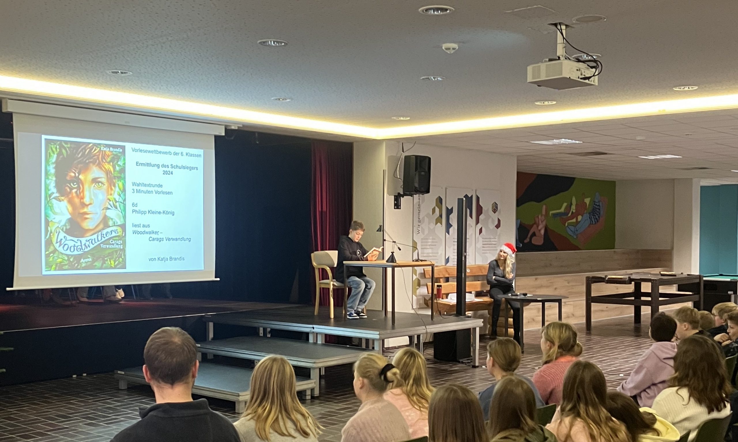 Philipp Kleine-König aus der 6d las aus „Woodwalker – Carags Verwandlung“ von Katja Brandis vor.